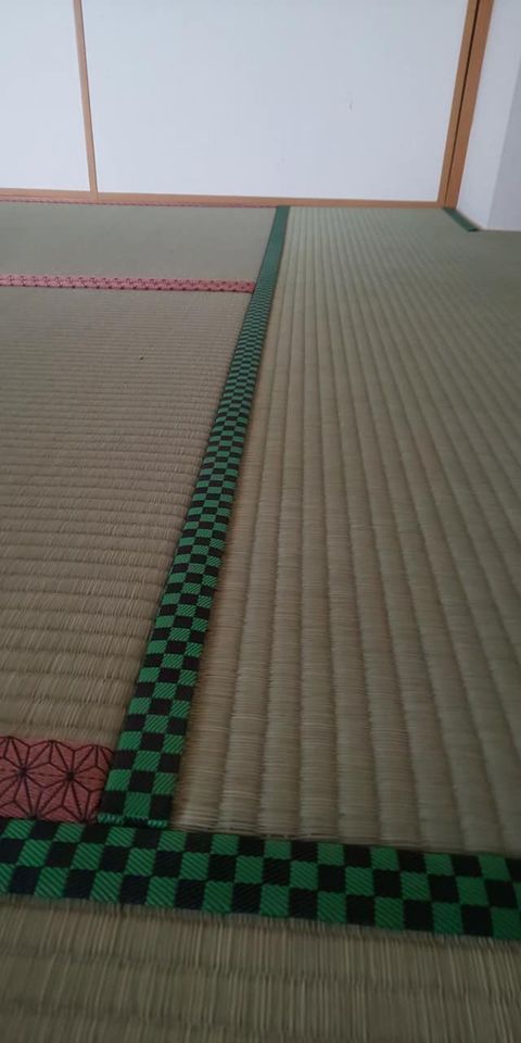 大阪市天王寺区にお住まいのS様宅の和室6畳の畳表替させていただきました(^^♪ ホームページご覧になられてのご依頼でした(^^♪ 中古マンションご購入され、ご引越に向けての畳替えです(^^)/ 畳表:熊本県産ひのさやか 畳縁:市松柄(緑✕黒)、麻の葉柄(ピンク) お子様が大人気アニメの鬼滅の刃の大ファンで畳縁見本ご覧になられて即決でした(^_-)-☆ ご希望で6枚の畳のうち、3枚を竈門 炭次郎イメージver. 市松柄(緑✕黒)、残り3枚を竈門 禰豆子イメージver. 麻の葉柄(ピンク)のコラボver.で仕上げました(*^^*) 和室が鬼滅ワールドに大変身です(^^)/ お子様喜んでもらえるかな??