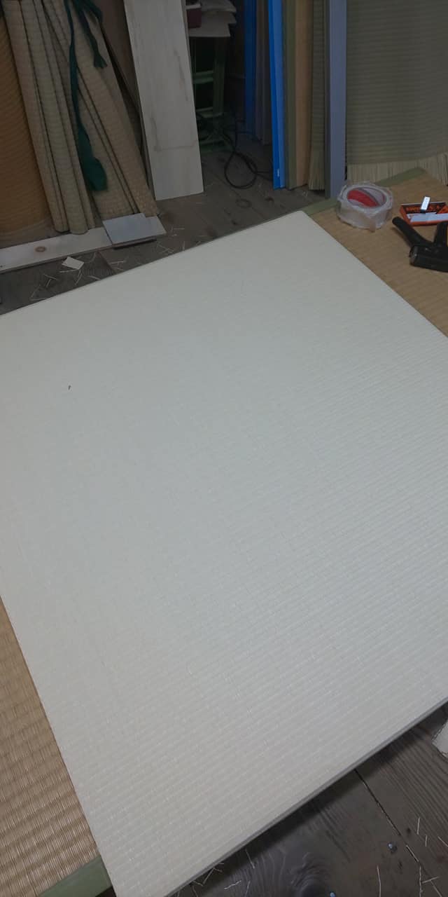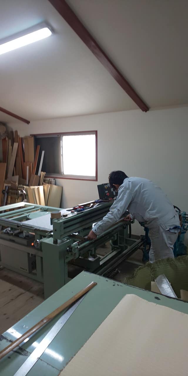 縁無し畳表折機で畳表に型をつけてから畳床に縫い合わせていきます(^^♪
