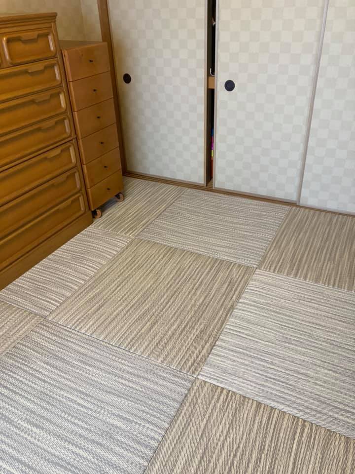 HOME > 畳施工実績:オシャレ畳(カラー畳・半畳縁無し畳など) > 大阪市都島区 A様 半畳縁無し畳 DAIKEN健やかおもて 穂波03 灰桜色×乳白色×銀鼠色