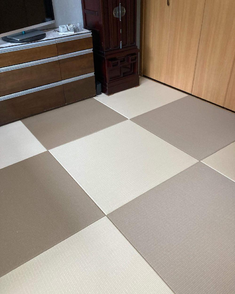 HOME > 畳施工実績:オシャレ畳(カラー畳・半畳縁無し畳など) > 大阪市都島区 M様 半畳縁無し畳 DIAKEN健やかおもて No.15白茶色&No.21小麦色