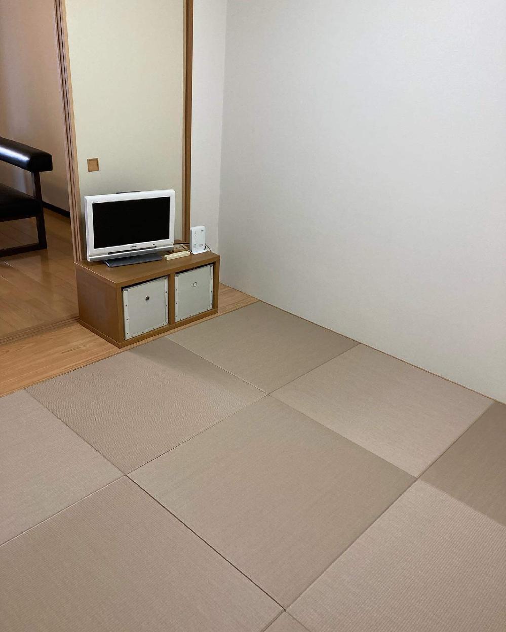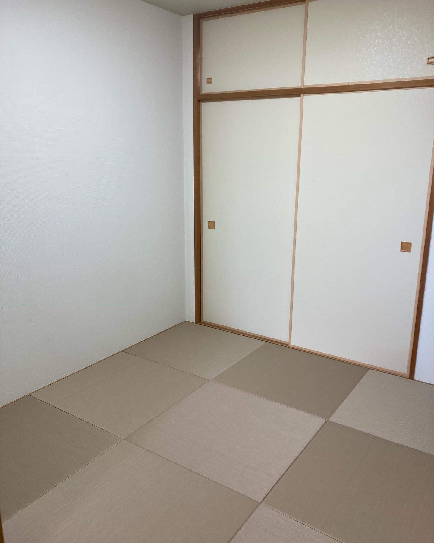 こんにちは(^^)/たつみ商店です! 大阪市城東区にお住まいのH様宅の和室の畳新調させていただきました(^^♪ 大人気のヘリ無し半畳畳で畳替えです☆ SEKISUI MIGUSA 目積 モカベージュ 畳の目の向きを交互に敷いていくと濃淡が出てオシャレ感増します(^^♪ 色合いも落ち着いていい感じ💛