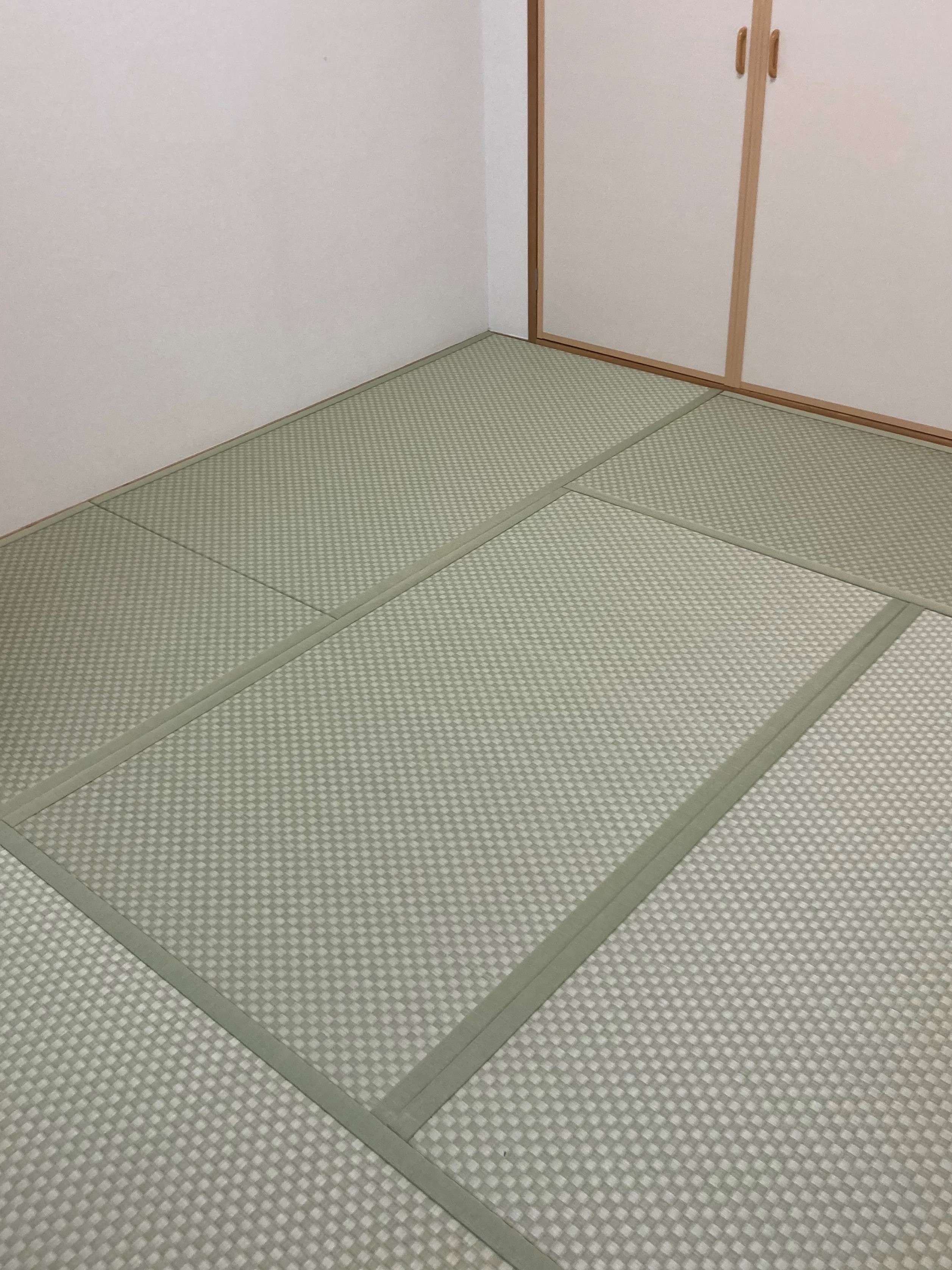 HOME > 畳施工実績:オシャレ畳(カラー畳・半畳縁無し畳など) > 大阪府高槻市 H様 カラー畳 SEKISUI MIGUSA 市松グリーン