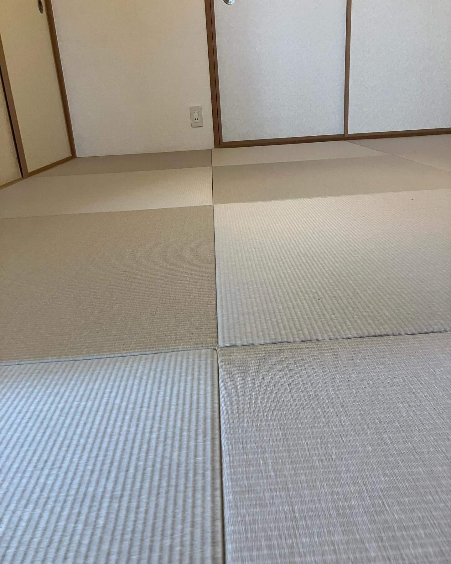 畳カラー選びはとても悩んでおられましたが、灰桜色に。 薄いグレーと薄いピンクを混ぜた感じの色味で、ベージュ系の雰囲気もあり、とても上品な仕上がりになりました(*^^*)