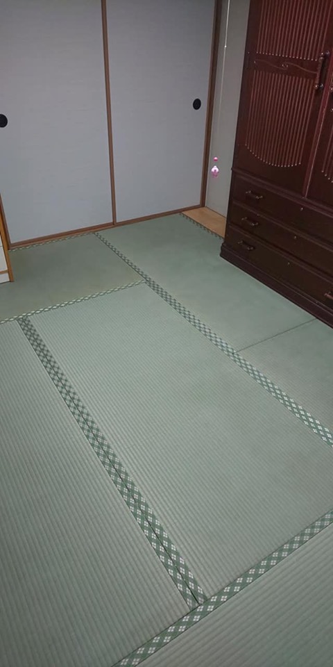 入り口付近の畳床が傷んでいた3枚(北先、中、南川)を新畳、その他3枚(北元、西マクラ、東マクラ)を表替させていただきました(^^♪