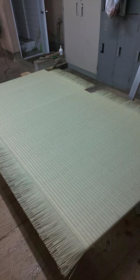 畳表サンプルをお持ちして、数種類の畳表を目で見て、手で触って違いをご説明していただきました!