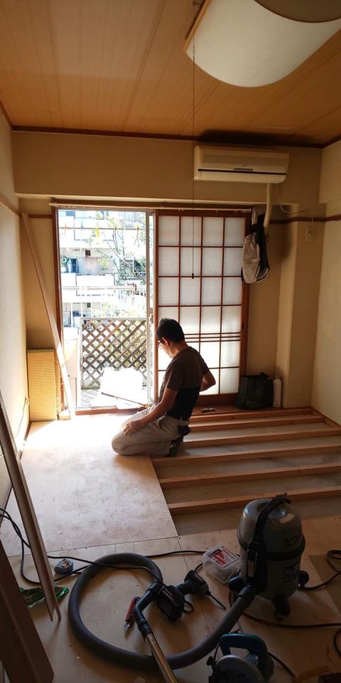 畳の厚み分を等間隔に垂木を固定し水平を取りながらコンパネを敷いて床上げします!
