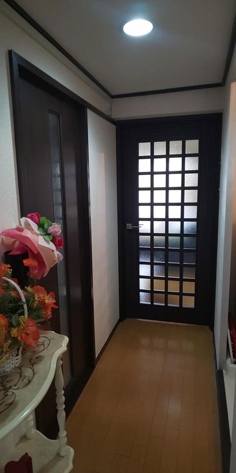 今回はお部屋全ての建具(ドア、引戸、収納扉)の交換、脱衣洗面室・トイレのクロス・クッションフロア張替、トイレ交換、お風呂ドア交換、和室の畳表替、障子新調、ペンキ工事させていただきました(^^)/