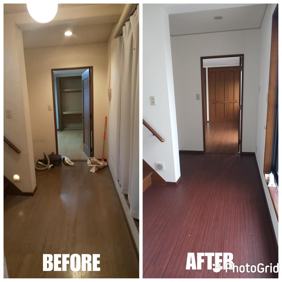 茨木市の一戸建て住宅の内装工事させていただきました(*^^*) いつもお世話になっているS工務店様からのご依頼でした(^^♪ 天井・壁クロス張替 フローリング直貼(一部ロイヤルウッド貼) 巾木工事 和室畳表替&襖張替 キレイになりました☆