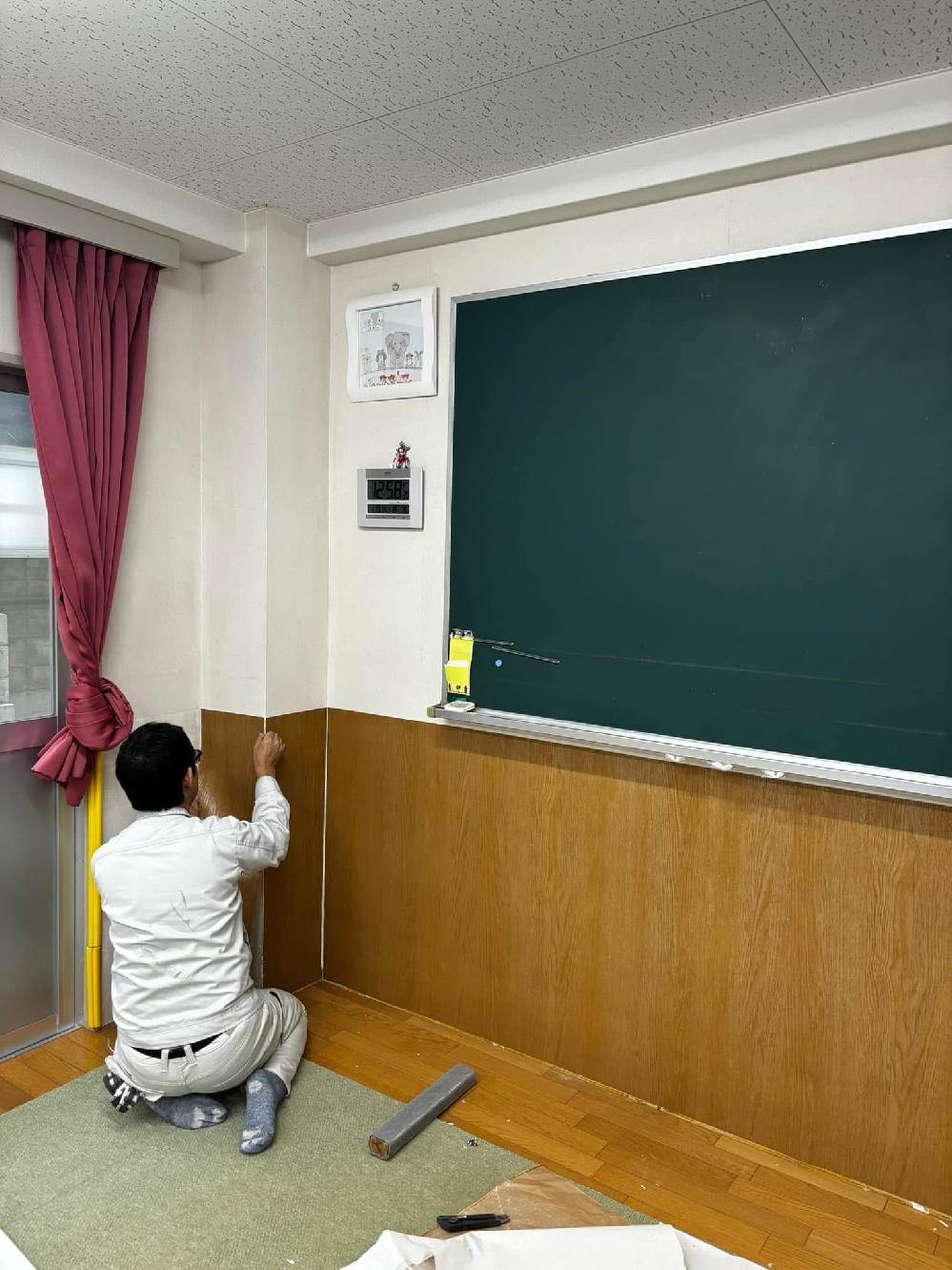 大阪市平野区の幼稚園の教室の壁に、東リ防汚消臭腰壁シートを施工させていただきました✨ この腰壁用塩ビシートは、耐久性・防汚性に優れ、さらに消臭機能付き! 元気いっぱいの子どもたちが集まる幼稚園を、汚れや傷からしっかり守ります。