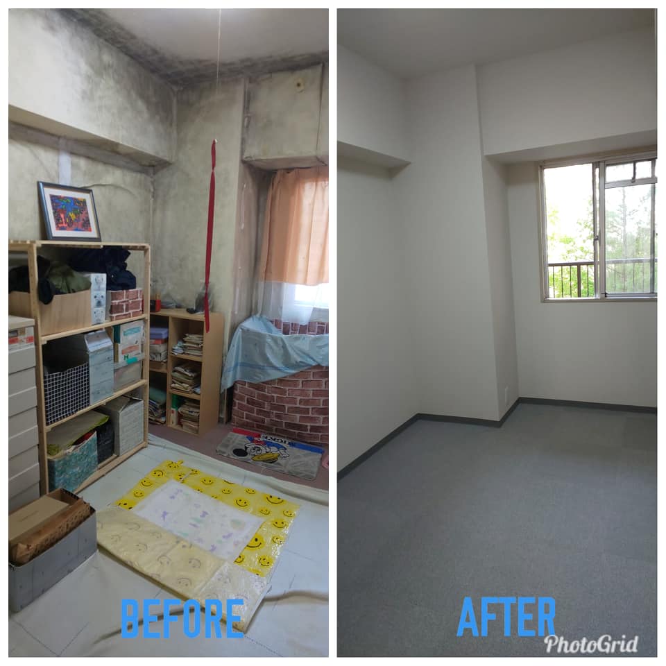 結露のせいか壁がめくれてたり、カビで黒く家全体が暗く、大変な状態でした・・・