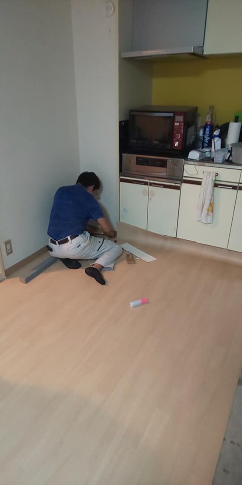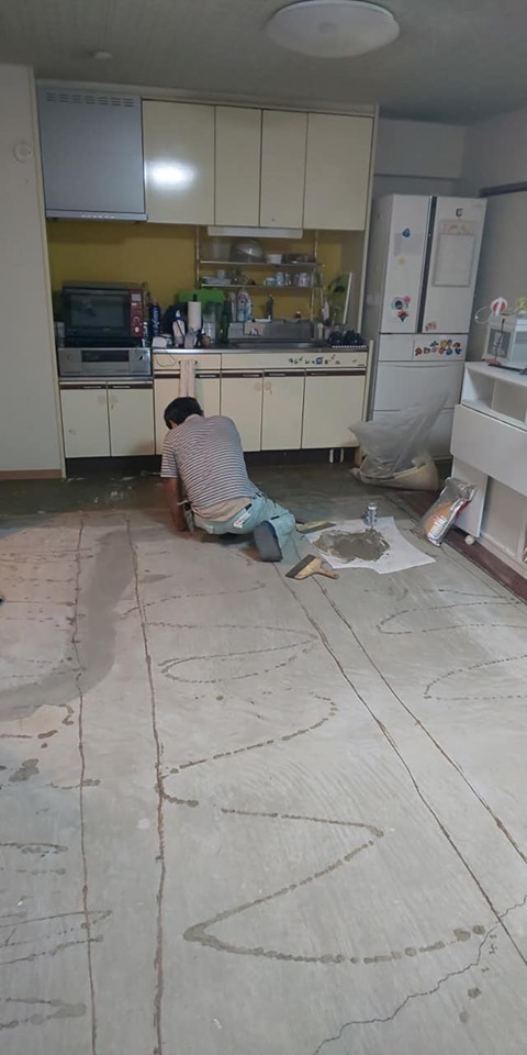 大阪市都島区にお住まいのH様宅のLDK、洗面脱衣室のクッションフロア貼りました(^^♪ ポスティングチラシご覧になられてのご依頼です✨ありがとうございます! LDKは現状カーペットでした! フェルトを外して、段差がつかないようにストレッパーで下地コンクリートを平らにして、クッションフロア貼っていきます(^^)/ LDKの床なので通常より厚みがある木目調のクッションフロアを採用しました! 洗面脱衣室はクッションフロア貼替です。 ストーン調のホワイト色のクッションフロアに! 良い感じに仕上がりました☆ お部屋が明るくなって広々して、お客様大喜びでした(^^)/