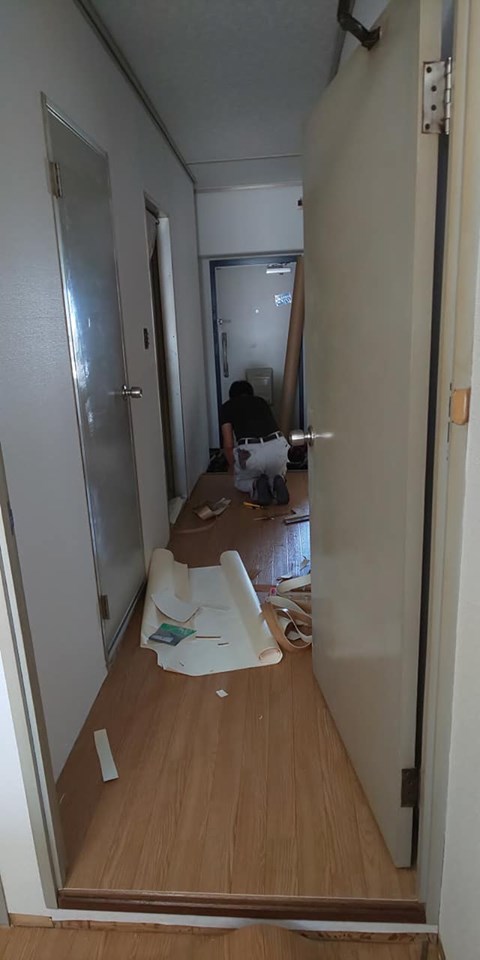 床の下地も凸凹でしたのでできる限りパテをしてからクッションフロア貼りました!