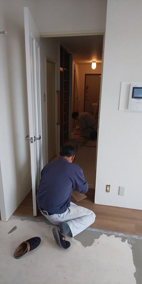 守口市にお住まいのN様宅の内装リフォームさせていただきました(*^^*) 築40年以上のマンションの為、汚れが目立つお部屋でした・・・ 天井はジプトンの為、ベニヤを貼りクロス貼りました(^^♪ 現状、床がカーペットだったLDKも段差を無くすため12mmのコンパネを貼り、木目調プリントタイルのロイヤルウッド貼りました(*^^)v ホールの収納折戸、洗面台も取替しました(^o^) 和室も壁・クロス貼替し、畳も表替えしました(*^^)v 特にLDKの床の色にご満足のご様子でした! 見違えるようにキレイになり大変喜んででいただけました(*^^*)「