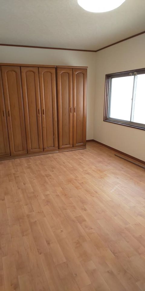 今回はお部屋全ての建具(ドア、引戸、収納扉)の交換、脱衣洗面室・トイレのクロス・クッションフロア張替、トイレ交換、お風呂ドア交換、和室の畳表替、障子新調、ペンキ工事させていただきました(^^)/