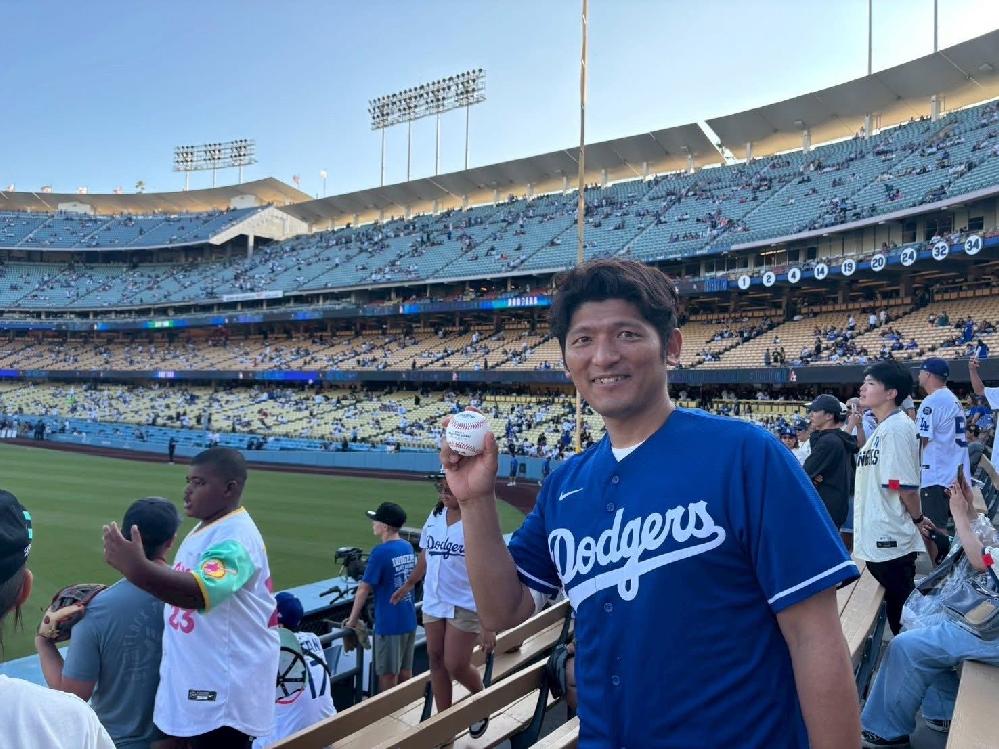なんとバッティング練習の最中に、奇跡的にホームランボールをキャッチ‼️